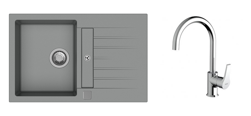 StrongSinks S3 Set zlew Vardar 780 780x500mm granit szary + Bateria Rhona chrom