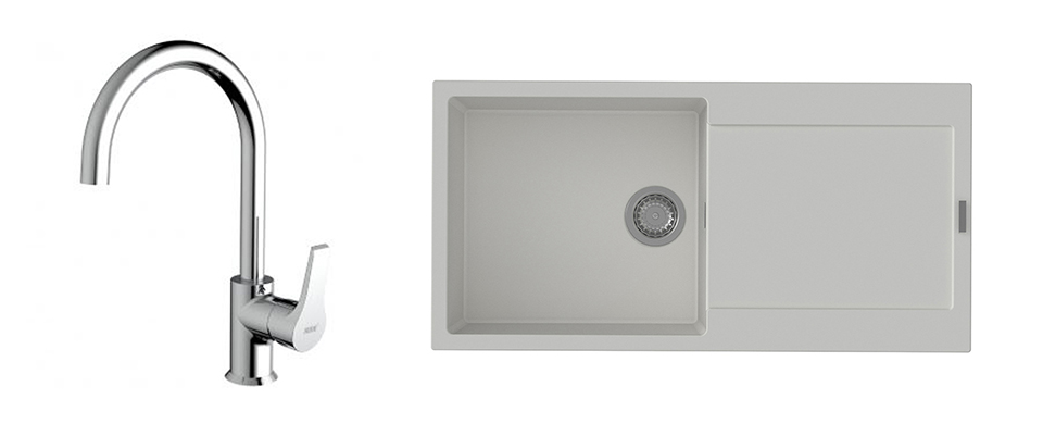 StrongSinks S3 Set zlew Zala 1000 1000x500mm granit biały + Bateria Rhona chrom