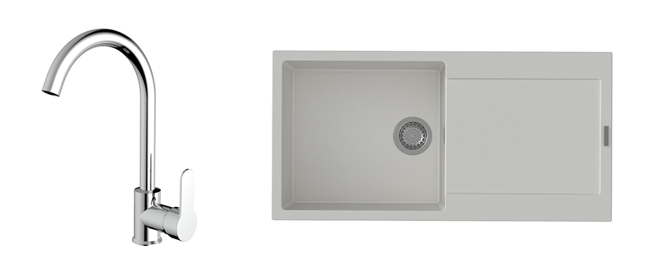 StrongSinks S3 Set zlew Zala 1000 1000x500mm granit biały + Bateria Seina chrom