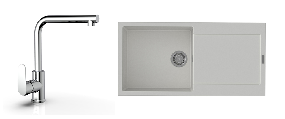StrongSinks S3 Set zlew Zala 1000 1000x500mm granit biały + Bateria Stréva chr.