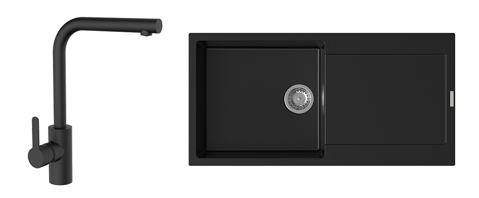 StrongSinks S3 Set zlew Zala 1000 1000x500mm granit czarny + Bateria Ipoly czar.