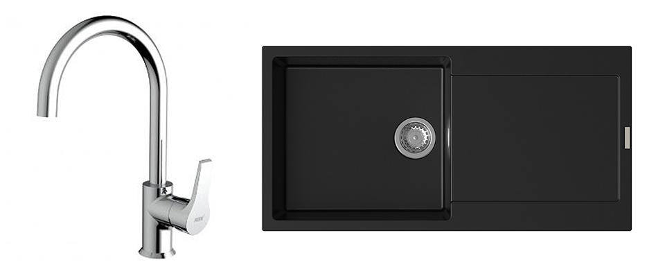 StrongSinks S3 Set zlew Zala 1000 1000x500mm granit czarny + Bateria Rhona chrom