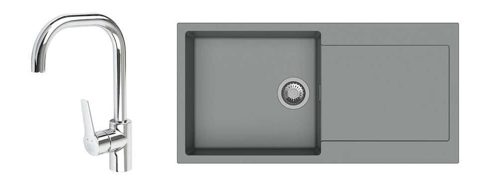StrongSinks S3 Set zlew Zala 1000 1000x500mm granit szary + Bateria Garonne chr.
