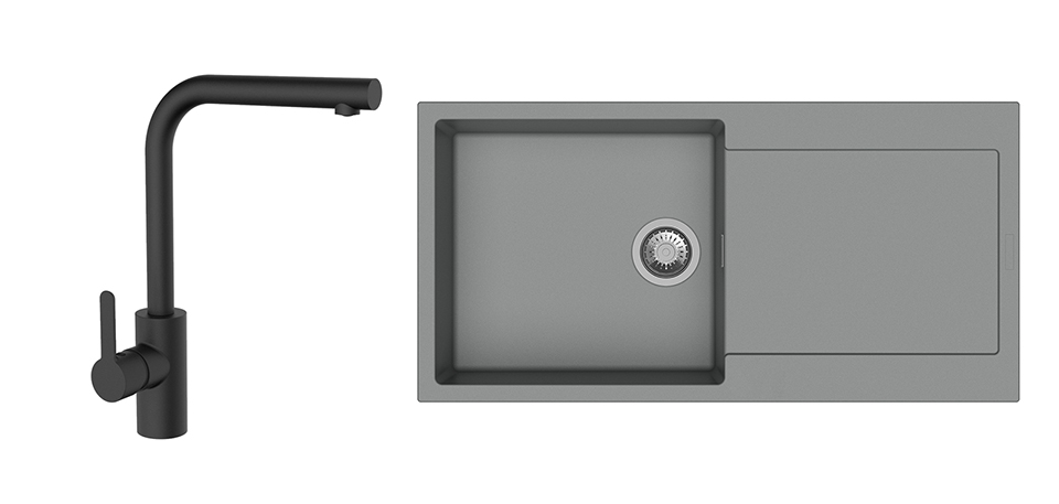 StrongSinks S3 Set zlew Zala 1000 1000x500mm granit szary + Bateria Ipoly czarna
