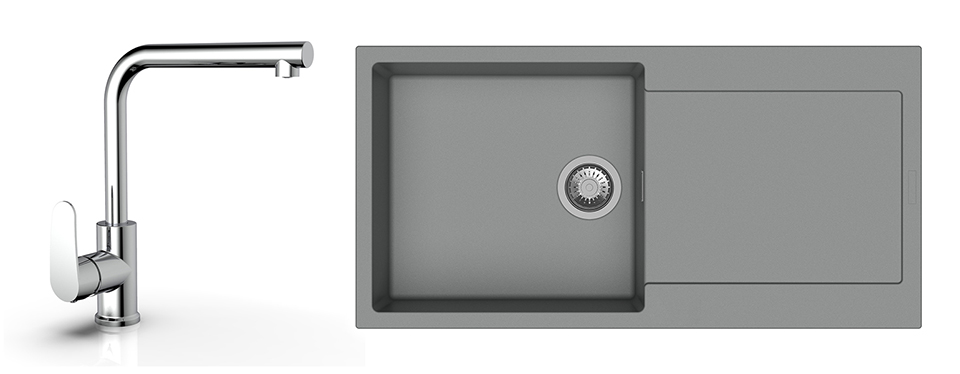 StrongSinks S3 Set zlew Zala 1000 1000x500mm granit szary + Bateria Stréva chr.