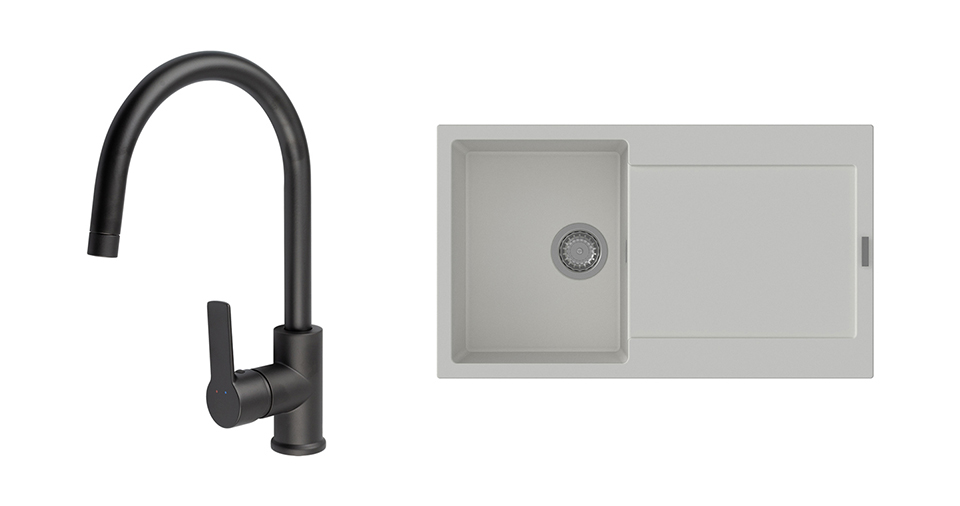 StrongSinks S3 Set zlew Zala 860 860x500mm granit biały + Bateria Loira czarna