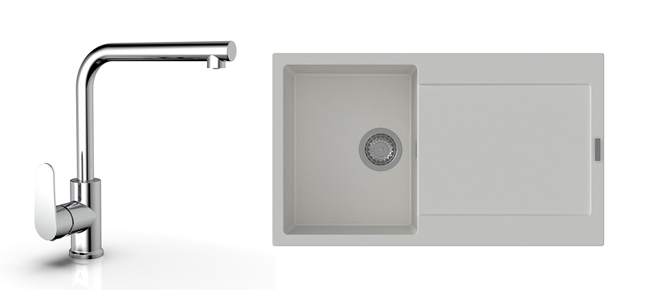 StrongSinks S3 Set zlew Zala 860 860x500mm granit biały + Bateria Stréva chrom