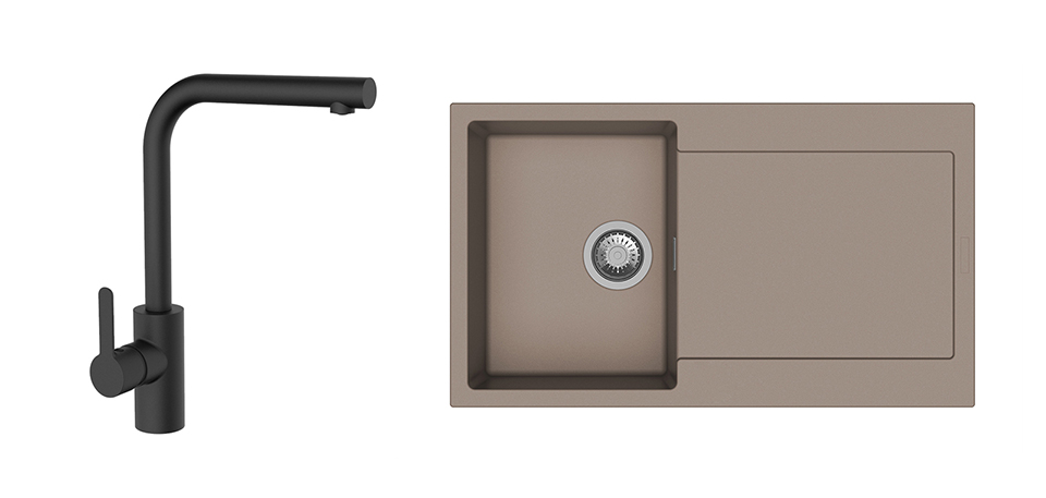 StrongSinks S3 Set zlew Zala 860 860x500mm granit brązowy + Bateria Ipoly czarna