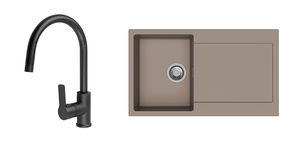 StrongSinks S3 Set zlew Zala 860 860x500mm granit brązowy + Bateria Loira czarna