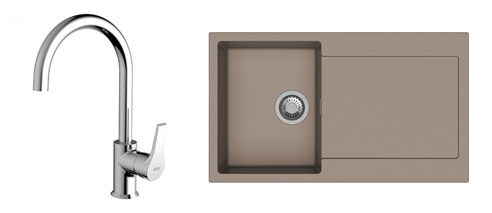 StrongSinks S3 Set zlew Zala 860 860x500mm granit brązowy + Bateria Rhona chrom