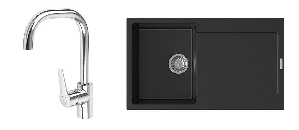 StrongSinks S3 Set zlew Zala 860 860x500mm granit czarny + Bateria Garonne chrom