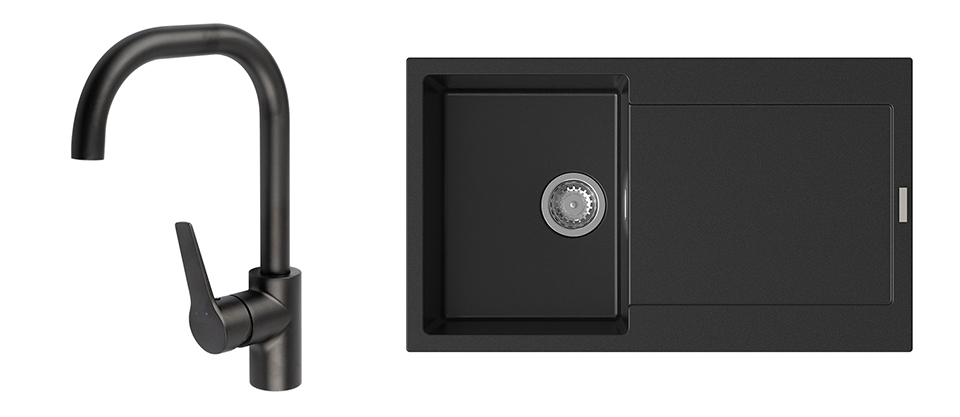 StrongSinks S3 Set zlew Zala 860 860x500mm granit czarny + Bateria Garonne czar.
