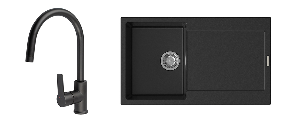 StrongSinks S3 Set zlew Zala 860 860x500mm granit czarny + Bateria Loira czarna