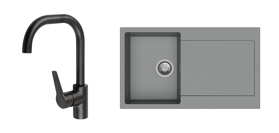 StrongSinks S3 Set zlew Zala 860 860x500mm granit szary + Bateria Garonne czarna