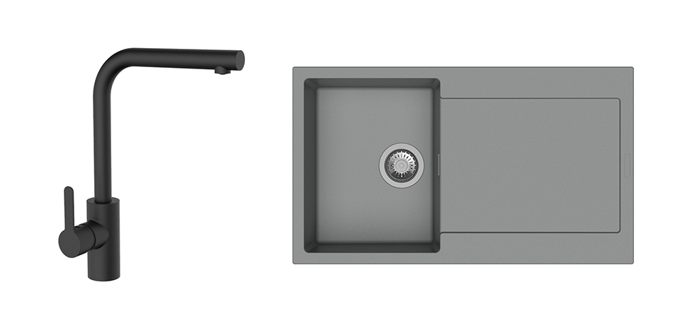 StrongSinks S3 Set zlew Zala 860 860x500mm granit szary + Bateria Ipoly czarna