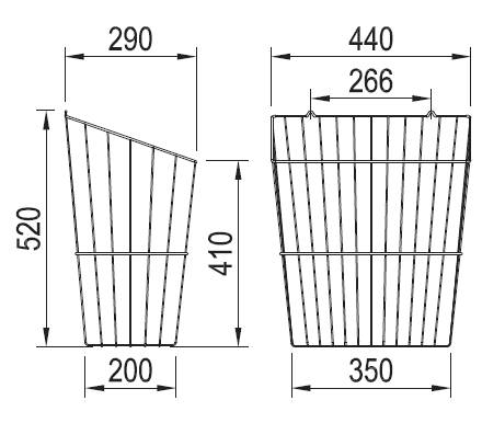 Kosz na bieliznę, biały z możliwością powieszenia na drzwiczki. Wysokość 520 mm, szerokość 440 mm, głębokość 290 mm.
