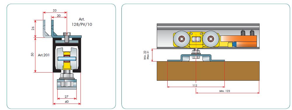 Okucie do jednego skrzydła drzwi przes. Maks.nośność 240kg. Tor górny: DT330 TE-POS.INT.KOV 240KG - Listwa 2M DT331 TE-POS.INT.KOV 240KG listwa 3M DT332 TE-POS.INT.KOV 240KGlistwa M