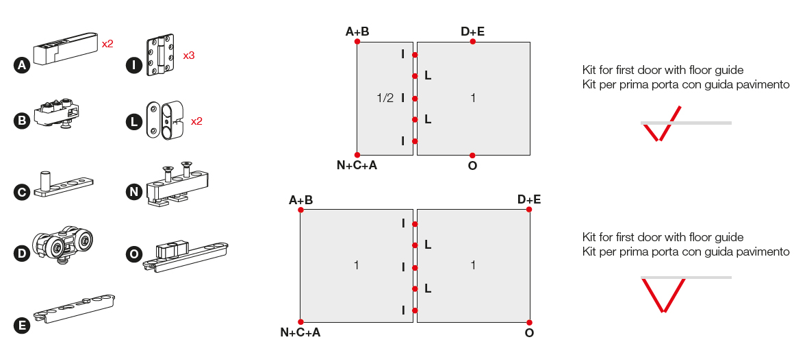 Zestaw okuć do pierwszego podwójnego skrzydła.