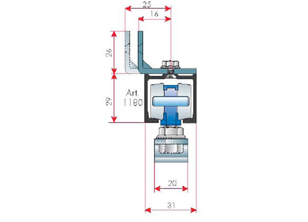 TERNO wewnętrzne drzwi przesuwne 40-160 kg, mocowanie profilu górnego