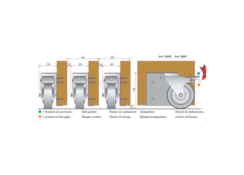 TERNO wózek z hamulcem po lewej stronie art. 306/S chrom