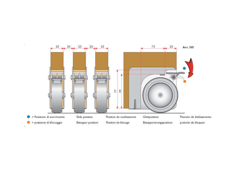 TERNO wózek z hamulcem po prawej stronie art. 306/D chrom