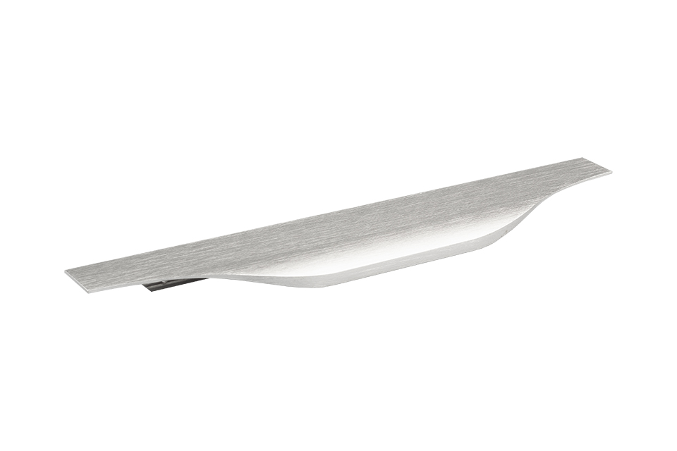 Profil uchwytu wbijany. Uchwyt wykonany z aluminium, wykończenie imitacja stali nierdzewnej jasnej, można łączyć wyłącznie z tą obróbką powierzchniową. Szerokość 20 mm. Grubość 1,5 mm. Wymiar rowka pod frezowanie: 3mm