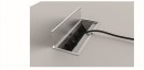 Kompletny system biurowy z 2 gniazdkami el., 2 kontenerami RJ45 oraz videokonektorem HDMI włącznie z przepustem aluminiowym 240x120 mm i mocowania, które umieszcza się do blatu roboczego stołu.