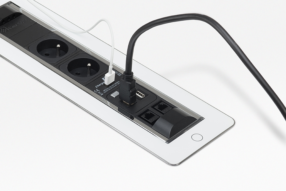 VersaTurn 2x 230V, 2x USB A 5V, 2x RJ45, HDMI, białe szkło