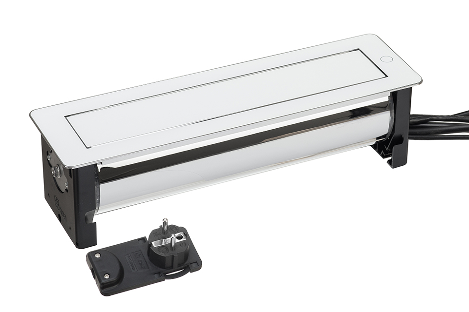 Versaturn to nowoczesne elektronicznie sterowane designowe gniazdko przeznaczone do osadzenia w biurkach, salach konferencyjnych lub hotelach. Wyposażone jest nowym czujnikiem dotykowym sterującym obracanie. Eleganckie wykończenie powierzchni ze stali nierdzewnej lub szkła dedykuje Versaturn do zastosowania dla najbardziej wymagających klientów. Jednostka obraca się za pomocą silnika elektrycznego po naciśnięciu przycisku, otwierając tym samym ukryte punkty połączeń. Aby zapewnić maksymalne bezpieczeństwo, jest wyposażony kontrolnym systemem laserowym uniemożliwiającym obracanie w chwili podłączenia gniazd lub w wypadku wystąpienia innych przeszkód. Kabel zasilający 2 m z płaską wtyczką. Bardzo ciche obracanie za pomocą silnika elektrycznego. Wykrywanie przeszkód. Wysoka jakość. AC 220 - 250V, 50Hz, 16A, 3400W. USB A+C 5V, 2.1A, 10.5W. Video: iframe width="560" height="315" src="https://www.youtube.com/embed/QQCxfcLY1nM" title="YouTube video player" frameborder="0" allow="accelerometer; autoplay; clipboard-write; encrypted-media; gyroscope; picture-in-picture" allowfullscreen>