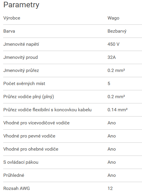 Spojovací svorka COMPACT. Pro všechny druhy vodičů Max. 4 mm. 5vodič. S páčkami. Barva pouzdra transparentní. Okolní teplota: max. 85 °C (T85).