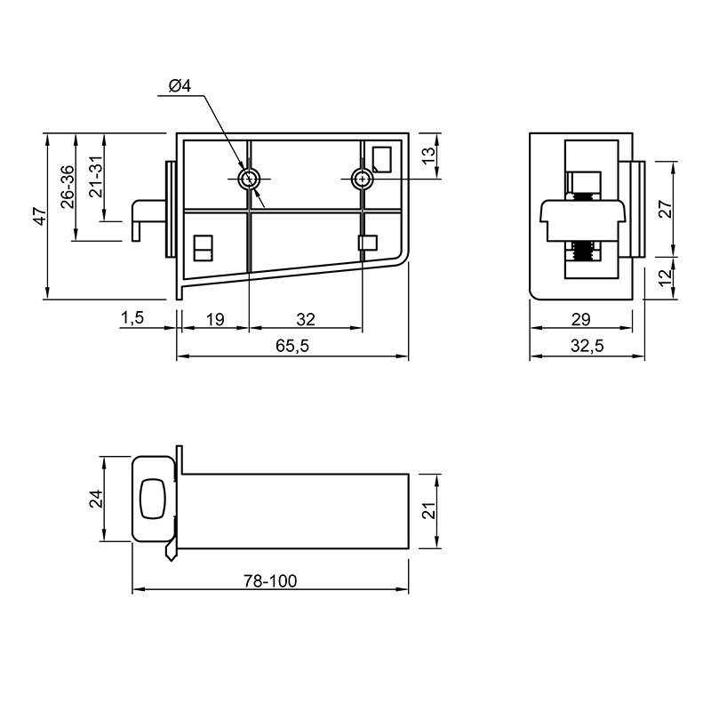 Regulacja w kierunku góra-dół +/- 10 mm. Regulacja prostopadle do ściany +/- 10 mm. Regulacja boczna poprzez przesunięcie na elemencie wieszakowym. Odpowiedni element 100236 lub szyna mocująca 82780 (82780R).